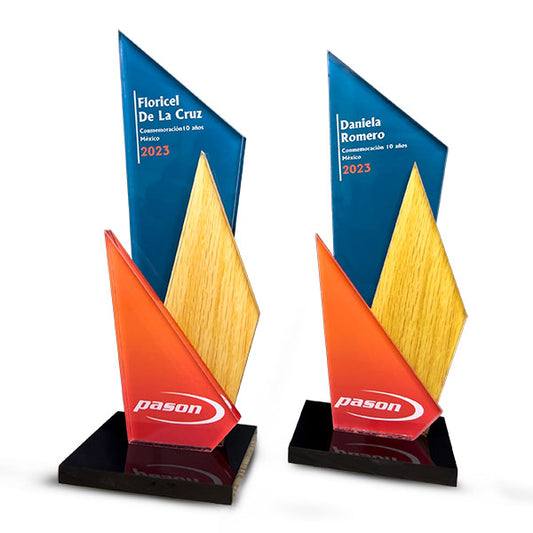 Nuestros trofeos están diseñados para eventos y premiaciones que merecen un reconocimiento excepcional. Con diseños exclusivos y la combinación de materiales premium como cristal, acrílico, metal y madera, cada galardón es una obra de arte que destaca por su originalidad y elegancia.